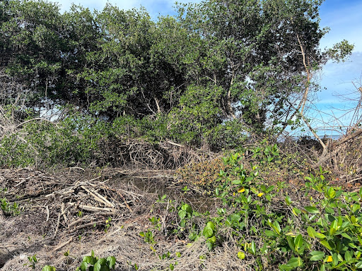 African Land Snails, Coconut Rhinoceros beetle netting to prevent access to the crown of the tree, and red mangrove removal before and after. This species was taking over the shoreline of this 800-year-old native Hawaiian fish pond.