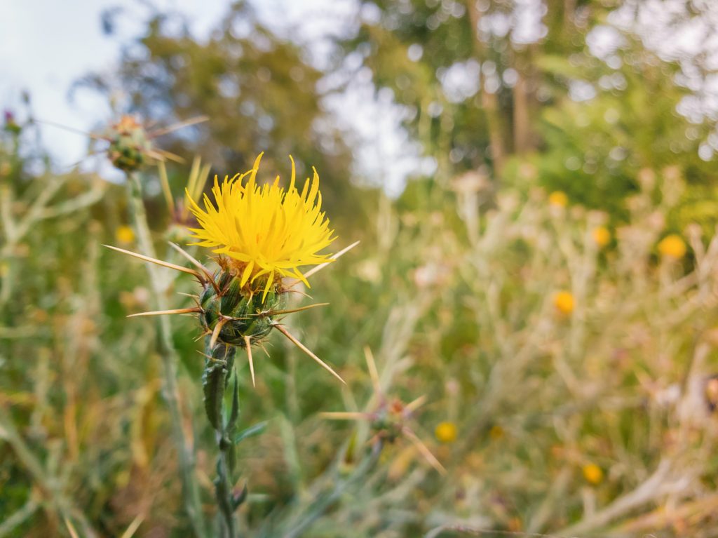 Yellow Starthistle (Centaurea solstitialis): A widespread noxious weed that infests millions of acres of California rangelands. It forms dense spiny stands that crowd out native grasses and wildflowers, reduce forage for livestock, and deplete soil moisture needed for desirable plants. Its deep taproot and prolific seed production make it extremely difficult to control once established.